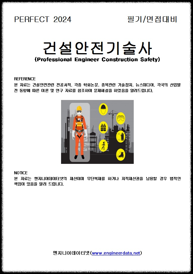 2024년 필기/면접대비 건설안전기술사 서적을 전면 개정작업과 편집을 진행하여 2023년까지 출제문제와 예상문제, 참고자료를 업데이트하여 판매하니 edn@engineerdata.net으로 문의하시거나 033-452-9081으로 전화를 주시면 상세하게 안내하여 드리며 귀하의 목표가 성취되어 아름다운 인생을 설계하시기를 기원합니다.