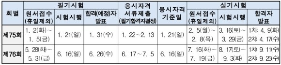○ 일요일 시행: 기능장 제76회, 기사(산업기사·서비스) 제2회, 기능사 제2회·제3회