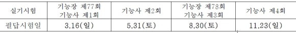 ○ 토요일 시행: 기능장 제78회, 기사(산업기사·서비스) 제2회, 기능사 제2회·제3회