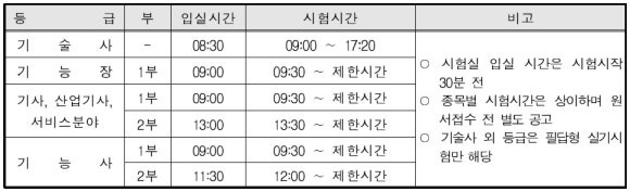 ■ 국가기술자격 기사·산업기사 필기시험 시험시간 조정 안내