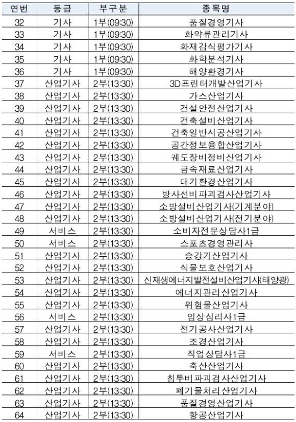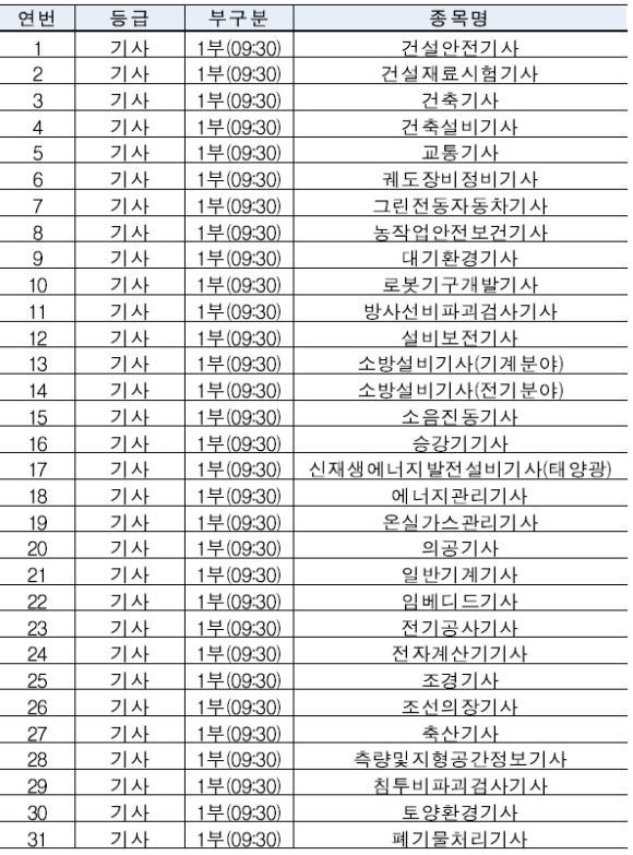 * 위 종목은 시험방식 변경에 따라 일부 조정될 수 있으며, 필답형과 작업형이 동일 일시에 시행되는 당일복합형 종목은 포함되지 않음