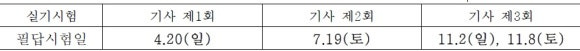 - 기사 3회 필답형 실기시험은 2일 분산 시행할 예정으로 종목별 세부 시행일은 별첨1 참고