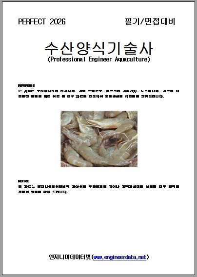 2026년 필기/면접대비 수산양식기술사 해설집을 2025년 135회까지 지속적인 개정과 편집으로 업데이트하여 판매하니 edn@engineerdata.net으로 문의하시거나 033-452-9081으로 전화를 주시면 상세하게 안내하여 드리며 시간이 지나면 모두가 불리합니다. 서적분량과 기억력 쇠퇴, 회사에서의 위기의식이 귀하를 후회하게 할 수도 있습니다. 지금 도전하세요.