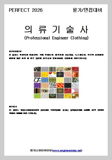 2026년 필기/면접대비 의류기술사 해설집을 2025년 137회까지 출제문제와 예상문제, 참고자료를 업데이트하여 판매하니 edn@engineerdata.net으로 문의하시거나 033-452-9081으로 전화를 주시면 샘플과 함께 상세하게 안내하여 드리며 하기 목차는 지금까지 출제된 문제를 풀이하여 답안지 형식으로 전개한 것입니다.