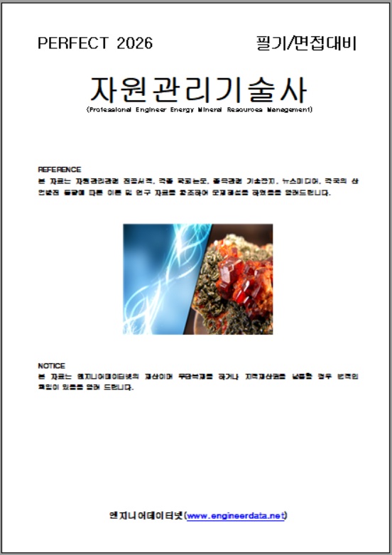 2026년 필기/면접대비 자원관리기술사 해설집을 2025년 137회까지 출제문제와 예상문제, 참고자료를 업데이트하여 판매하니 edn@engineerdata.net으로 문의하시거나 033-452-9081으로 전화를 주시면 샘플과 함께 상세하게 안내하여 드리며 하기 목차는 지금까지 출제된 문제를 풀이하여 답안지 형식으로 전개한 것입니다.
