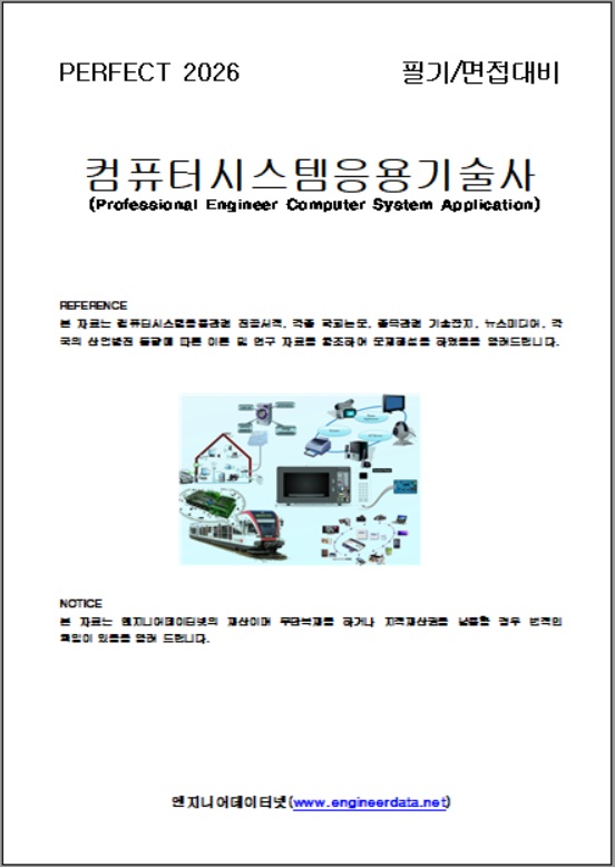 2026년 필기/면접대비 컴퓨터시스템응용기술사 해설집을 2025년 137회까지 출제문제와 예상문제, 참고자료를 업데이트하여 판매하니 edn@engineerdata.net으로 문의하시거나 033-452-9081으로 전화를 주시면 샘플과 함께 상세하게 안내하여 드리며 하기 목차는 지금까지 출제된 문제를 풀이하여 답안지 형식으로 전개한 것입니다.