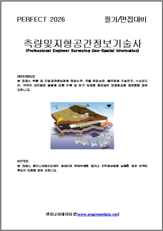 2026년 필기/면접대비 측량및지형공간정보기술사 해설집을 2025년 137회까지 출제문제와 예상문제, 참고자료를 업데이트하여 판매하니 edn@engineerdata.net으로 문의하시거나 033-452-9081으로 전화를 주시면 샘플과 함께 상세하게 안내하여 드리며 하기 목차는 지금까지 출제된 문제를 풀이하여 답안지 형식으로 전개한 것입니다.