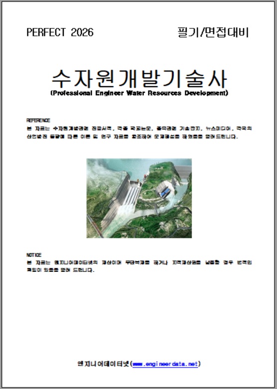 2026년 필기/면접대비 수자원개발기술사 해설집을 2025년 137회까지 출제문제와 예상문제, 참고자료를 업데이트하여 판매하니 edn@engineerdata.net으로 문의하시거나 033-452-9081으로 전화를 주시면 샘플과 함께 상세하게 안내하여 드리며 하기 목차는 지금까지 출제된 문제를 풀이하여 답안지 형식으로 전개한 것입니다.