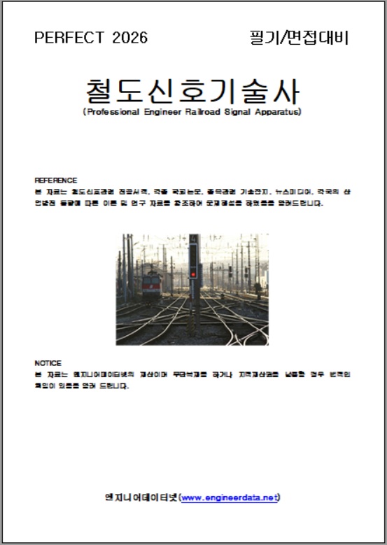 2026년 필기/면접대비 철도신호기술사 해설집을 2025년 137회까지 출제문제와 예상문제, 참고자료를 업데이트하여 판매하니 edn@engineerdata.net으로 문의하시거나 033-452-9081으로 전화를 주시면 샘플과 함께 상세하게 안내하여 드리며 하기 목차는 지금까지 출제된 문제를 풀이하여 답안지 형식으로 전개한 것입니다.