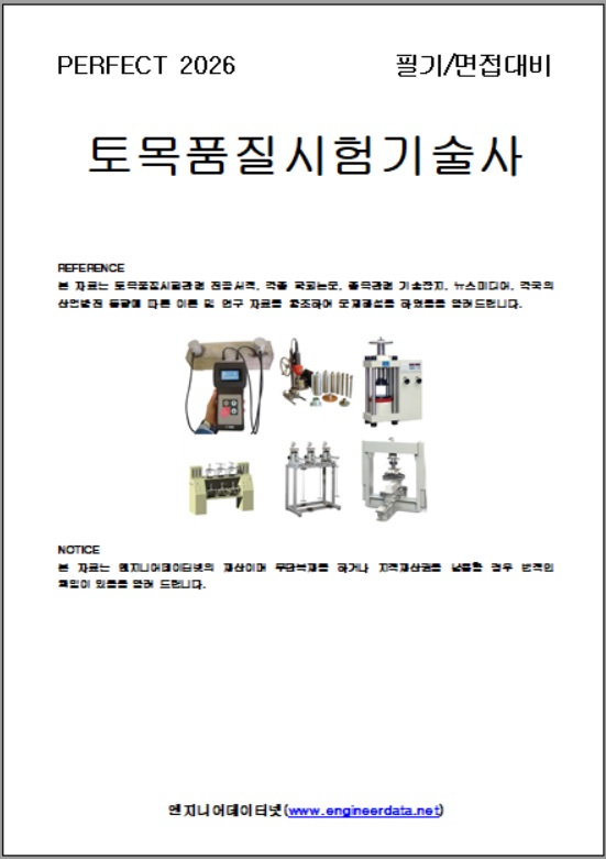 2026년 필기/면접대비 토목품질시험기술사 해설집을 2025년 137회까지 출제문제와 예상문제, 참고자료를 업데이트하여 판매하니 edn@engineerdata.net으로 문의하시거나 033-452-9081으로 전화를 주시면 샘플과 함께 상세하게 안내하여 드리며 하기 목차는 지금까지 출제된 문제를 풀이하여 답안지 형식으로 전개한 것입니다.