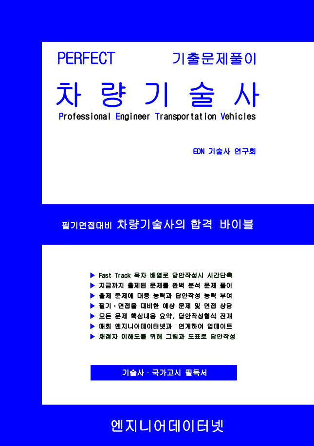 따라서 차량관련 분야에 종사하는 엔지니어는 자신의 능력과 경쟁력을 갖추어야 미래를 보장받을 수 있으며 행복한 삶을 살아갈 수가 있다. 따라서 PERFECT 차량기술사(최신판) 서적은 60회(2000년)부터 최근까지 출제된 문제를 분석하고 검토하여 효율적인 준비를 하도록 유도를 하였다. 또한 최근의 출제문제 경향을 보면 새로운 문제가 계속 출제가 되고 있어 새로운 문제에 대한 답안작성 능력을 배양하도록 하였다.