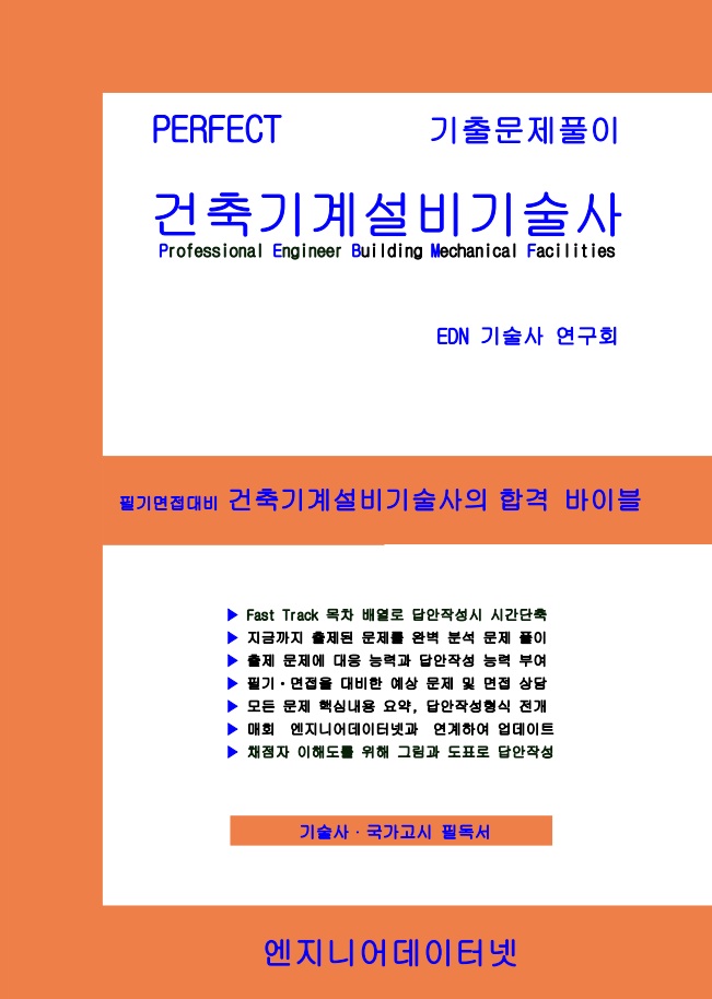 따라서 건축기계설비관련 분야에 종사하는 엔지니어는 자신의 능력과 경쟁력을 갖추어야 미래를 보장받을 수 있으며 행복한 삶을 살아갈 수가 있다. 따라서 PERFECT 건축기계설비기술사(최신판) 서적은 72회(2004년)부터 최근까지 출제된 문제를 분석하고 검토하여 효율적인 준비를 하도록 유도를 하였다. 또한 최근의 출제문제 경향을 보면 새로운 문제가 계속 출제가 되고 있어 새로운 문제에 대한 답안작성 능력을 배양하도록 하였다.