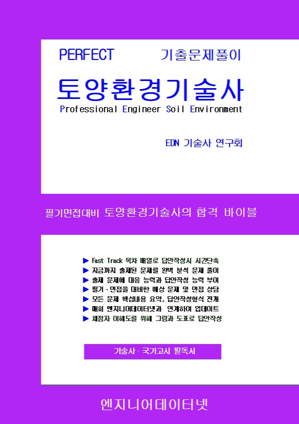 따라서 토양환경관련 분야에 종사하는 엔지니어는 자신의 능력과 경쟁력을 갖추어야 미래를 보장받을 수 있으며 행복한 삶을 살아갈 수가 있다. 따라서 PERFECT 토양환경기술사(최신판) 서적은 79회(2006년)부터 최근까지 출제된 문제를 분석하고 검토하여 효율적인 준비를 하도록 유도를 하였다. 또한 최근의 출제문제 경향을 보면 새로운 문제가 계속 출제가 되고 있어 새로운 문제에 대한 답안작성 능력을 배양하도록 하였다.